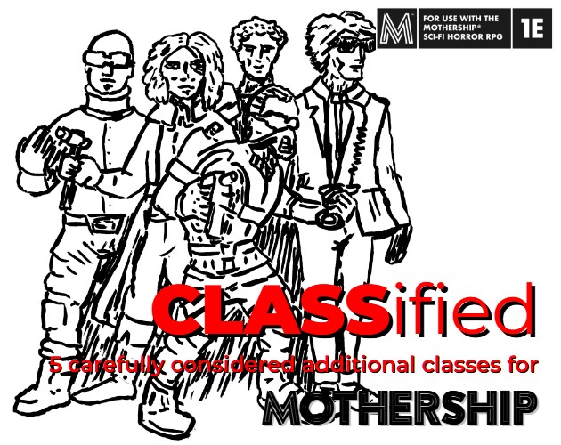 CLASSified is an A4 trifold pamphlet that offers 5 carefully considered additional classes for MOTHERSHIP RPG.
